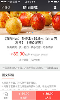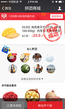 新型團購類商城,顧客發起團購,通過分享轉發拉朋友一起低價組團購物。